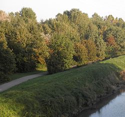 Il Canal Salso in prossimità di viale Ancona; sullo sfondo il centro direzionale “La Vela”.