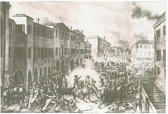 Il 22 marzo 1848, sulla scia dei moti patriottici risorgimentali, a Venezia gli insorti guidati da Daniele Manin cacciarono gli Austriaci e proclamando la Repubblica di San Marco, mentre a Mestre la Guardia Civica prese il controllo della città. Rinforzata da soldati, finanzieri e volontari, ottenne la resa di Forte Marghera e lo difese contro gli austriaci, che tentarono di rioccuparlo.